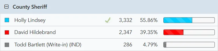 Lindsey stood for election in her own right last year, winning the Democratic primary unopposed and then defeating Republican David Hildebrand by nearly 1,000 votes: