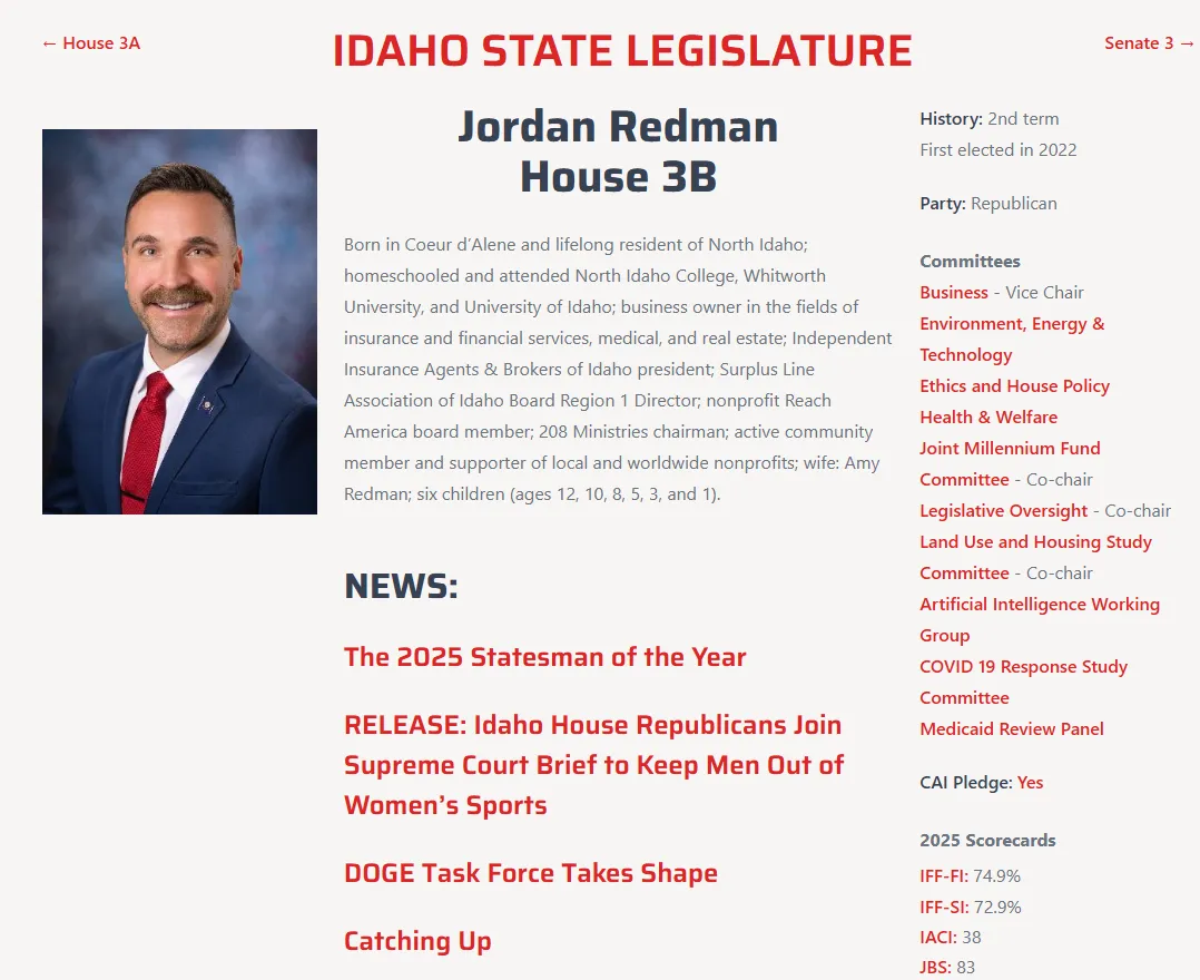 Last weekend, I opened up the hood of Idaho Insider to add more features that I hope will be useful to you. Earlier this year, with the help of AI tools, I constructed a system in which the data that appears on a legislator’s profile page—committee assignments, links to websites and contact info, legislative scorecards—is generated dynamically based on a back-end database.