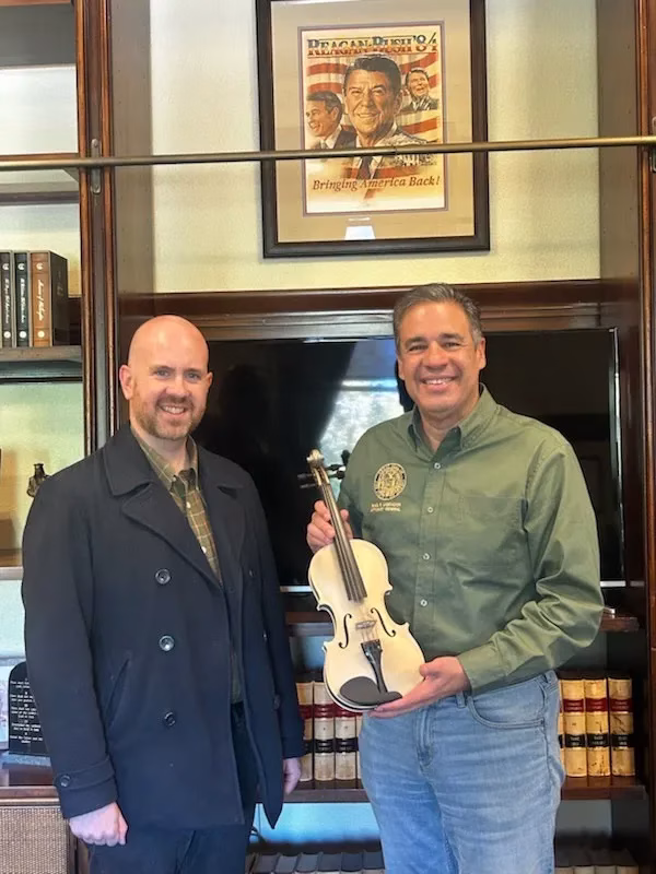 Sitting down with Sen. Jim Risch at the Idaho GOP Summer Meeting in Pocatello was a fun highlight this year, as was my opportunity to present Attorney General Raúl Labrador with a “golden fiddle” in recognition of his victory over Satanists in court.