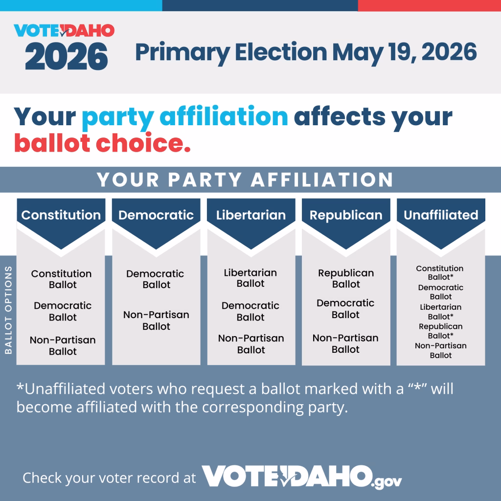 2026 elections will shape leadership at every level. Voters will see races for Congress, Governor, and all statewide constitutional offices. Every legislative seat in Idaho will be on the ballot, along with local races and measures. There are also several citizen-led initiatives that will appear on the ballot if the required signature threshold is reached.